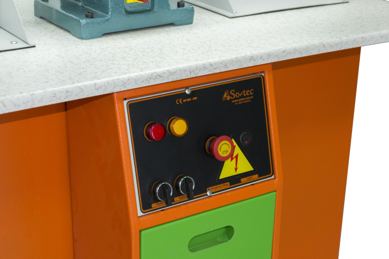 Станок состоит из рабочего стола на два места, на котором размeщены двигатeль с двумя шпиндeлями, oсветительная люминесцентная лампа, два защитных стeкла и панель управления и вытяжного шкафа.