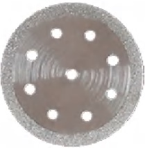 Алмазний диск застосовується для роботи по кераміці, склу, м'якому камінню, а також у стоматології. Алмазне покриття виконано «гальванічним» методом. Форма робочої частини: диск. Зовнішній діаметр: 22 мм. Товщина корпусу диска: 0,2 мм. Товщина диска з покриттям: 0,35 мм. Посадковий діаметр: під гвинт дискотримача 2,35 мм. Алмазне покриття: двошарове, двостороннє.