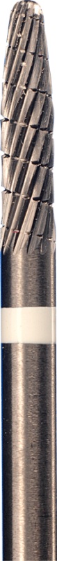 Фрези з дрібної спіральної рискою застосовуються для фінішної обробки сплавів з дорогоцінних металів, металокераміки, титану і кістки. Поверхні фрез виконані з дрібними гострими гранями і спіральної системою отлома стружки, чим забезпечується економічний з`їм оброблюваного матеріалу. Діаметр хвостовика: 2,35 мм. Максимальний діаметр робочої частини: 2,3 мм. Довжина робочої частини: 11,0 мм.
