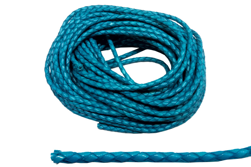 Шкіряний плетений шнурок. Форма: коло. Колір блакитний. Розмір: 3 мм.