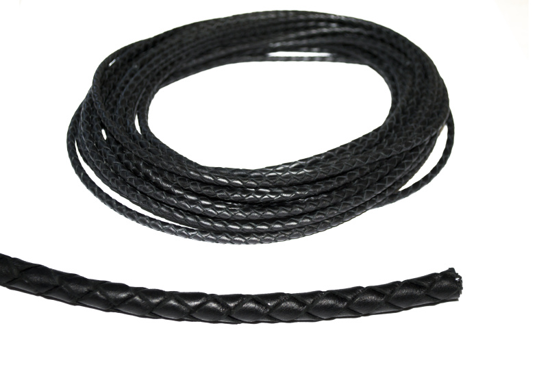 Шкіряний плетений шнурок. Форма: коло. Колір чорний. Розмір: 4,5 мм.