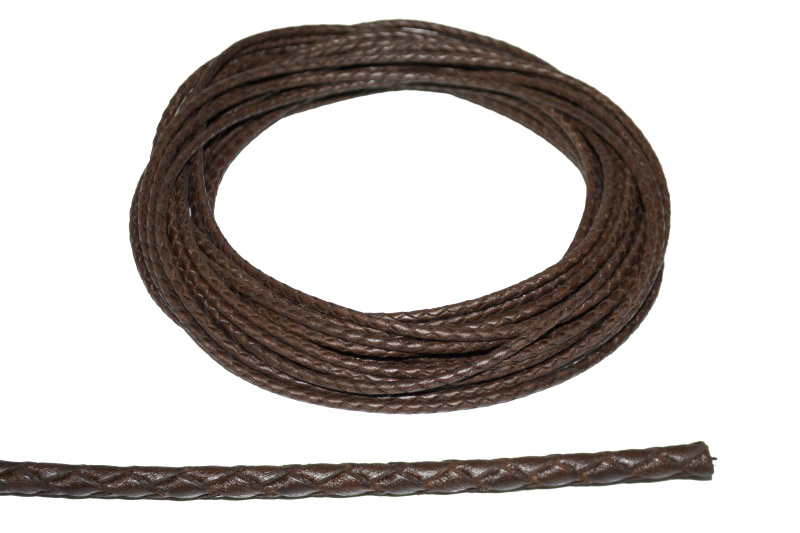 Шкіряний плетений шнурок. Форма: коло. Колір: шоколадний. Розмір: 3 мм.