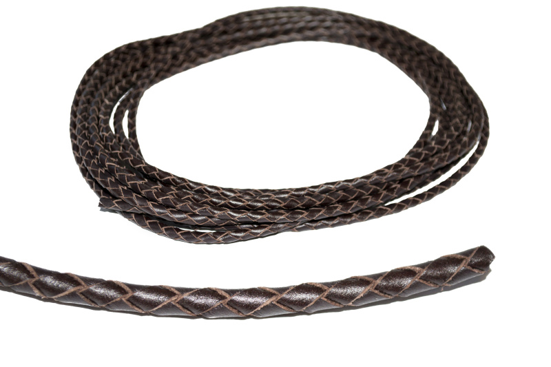 Шкіряний плетений шнурок. Форма: коло. Колір коричневий. Розмір: 4 мм.