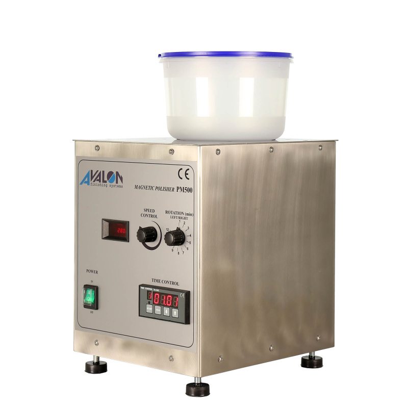 Магнітогалтовка AVALON РМ500 розроблена для масового оброблення дрібних немагнітних виробів (до 500г виробів за один цикл обробки). У якості наповнювача використовуються голки з нержавіючої сталі. Підходить для швидкого та точного очищення самих важкодоступних місць на поверхні навіть дрібних виробів.
