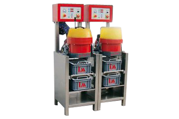 Наявність 2-х барабанів забезпечує можливість безперебійної роботи в процесі фінішної обробки: 1-й барабан заповнюється спеціальним абразивом для обдирання, в той час як 2-й барабан & nbsp; використовується для доведення, а також тонкої поліровки і надання глянцю ювелірним виробам.