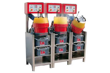 Наявність 3-х барабанів забезпечує можливість безперебійної роботи в процесі фінішної обробки: 1-й & nbsp; барабан має спеціальну конструкцію для застосування спеціального абразивного наповнювача & nbsp; для обдирання в мокрому середовищі, в той час як 2-й і 3-й & nbsp; барабани використовуються для доведення, а також тонкої поліровки і надання глянцю.