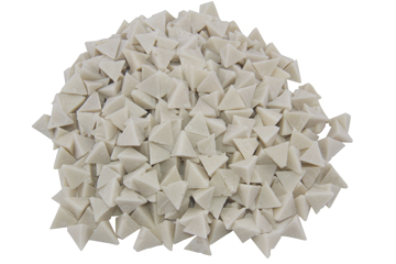 Наповнювач застосовується для тонкої шліфовки дорогоцінних металів в барабанних, вібраційних і роторних галтування. Режим роботи - мокра обробка з компаундом. Матеріал - пластик. Форма - піраміда. Розмір - 10х10 мм.