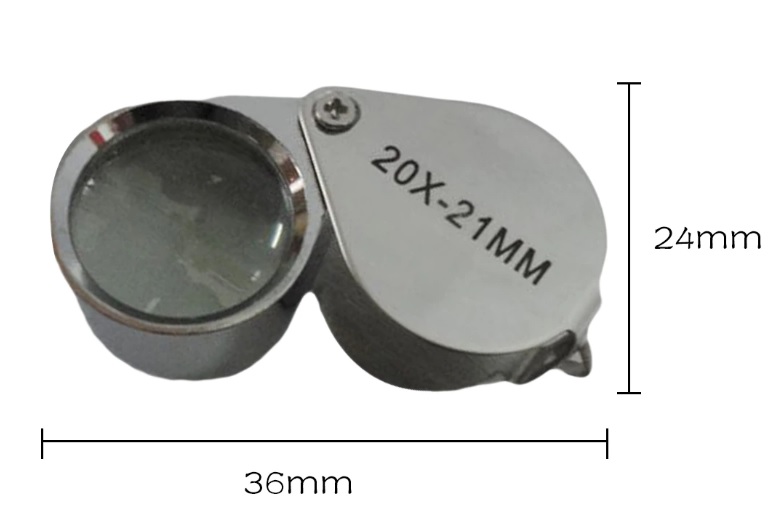 Лупа переглядова, складна, кишенькова, для розглядання і оцінки каменів, ювелірних виробів і інших дрібних предметів. Лупа має 3 лінзи. Збільшення: 20 крат. Діаметр лінзи: & nbsp; 21 мм. Оптика: скло.