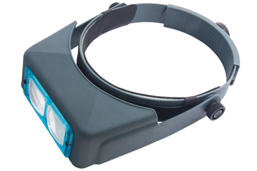 Регульований обхват голови. Унікальні "призматичні" лінзи з нецарапающегося скла дають фокус на малих відстанях без напруги очей. Більш дешеві аналоги можуть виглядати так само, але жодна з них не володіє такою якістю і ефективністю, як Optivisor. Можуть бути використані в поєднанні зі звичайними окулярами. Лінзи змінні. Збільшення: 3,5 рази. Фокусна відстань: 100 мм.
