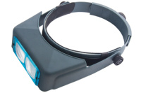 Регульований обхват голови. Унікальні "призматичні" лінзи з нецарапающегося скла дають фокус на малих відстанях без напруги очей. Більш дешеві аналоги можуть виглядати так само, але жодна з них не володіє такою якістю і ефективністю, як Optivisor. Можуть бути використані в поєднанні зі звичайними окулярами. Лінзи змінні. Збільшення: 1,75 рази. Фокусна відстань: 350 мм.