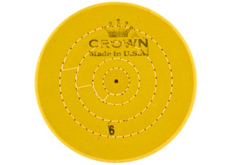 Круг виготовлений з мусліну і просочений спеціальнім складом, що скріплює волокна тканини, і це збільшує його зносостійкість. Круг з жовтим просоченням використовується з полірувальними пастами на початкових стадіях полірування. Прошитий. Діаметр: 150 мм. Кількість шарів: 70.
