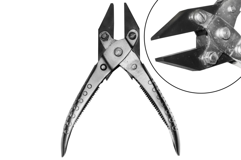 Професійні високоміцні ювелірні плоскогубці з паралельним затискачем, без насічки, з пружиною. Матеріал: інструментальна полірована сталь. Довжина робочої частини: 30 мм. Загальна довжина: 140 мм.