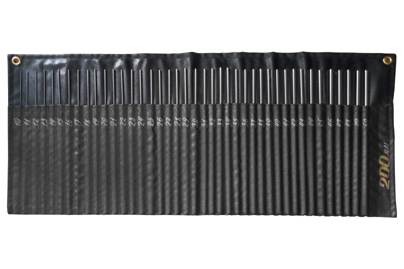 Ригель для виготовлення ланок ланцюга ( "спиці") з пружною стали. Діаметр з 1 по 5 мм. Довжина 200 мм. Крок 0.1 мм. Набір 41 шт. Упаковка Чохол.