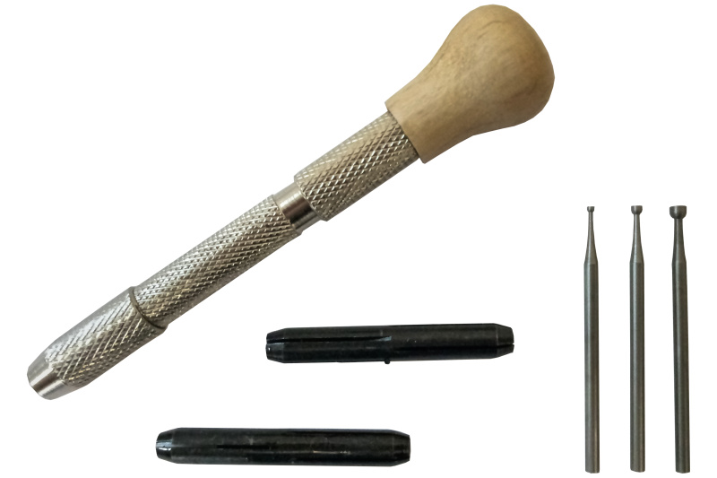 Цанга сталева на дерев`яній ручці призначена для утримання свердел і іншого змінного інструменту. У наборі дві двосторонні насадки. Затиск: 0-3 мм, а також 3 бору чашки d-1.2, d-1.8 і d-2.6 мм.