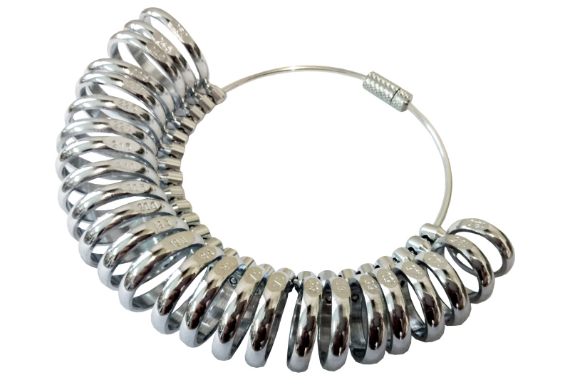 Простий і акуратний прилад, який вимірює розміри пальців для точного підбору кільця. Всі номери ясно вказані на кожному розмірі, що полегшує роботу. Шкала розмірів: 13-25 мм, через 0,5 мм. & Nbsp; Матеріал: метал.