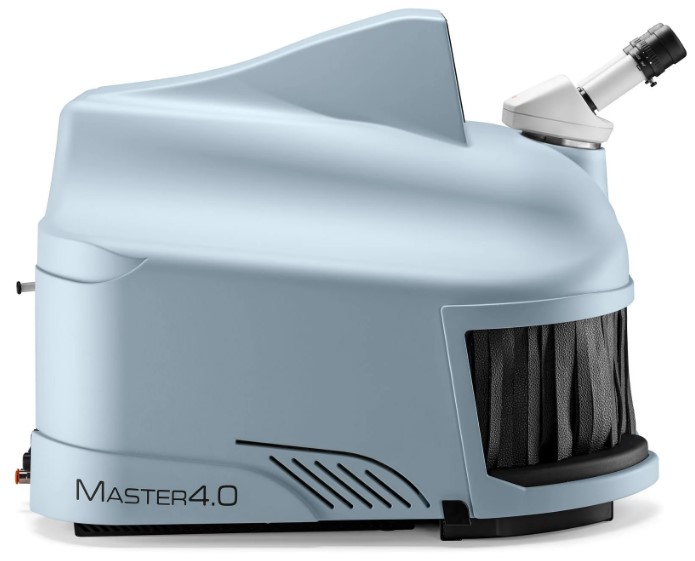Master 4.0 — це новий компактний зварювальний апарат у посиленому корпусі останнього покоління із зручними вбудованими підлокітниками, 7-дюймовим ємнісним дисплеєм та джойстиком усередині зварювальної камери. Завдяки останнім удосконаленим оновленням лазер дозволяє збільшити можливості підключення, а також покращити лазерний промінь з точки зору повторюваності.