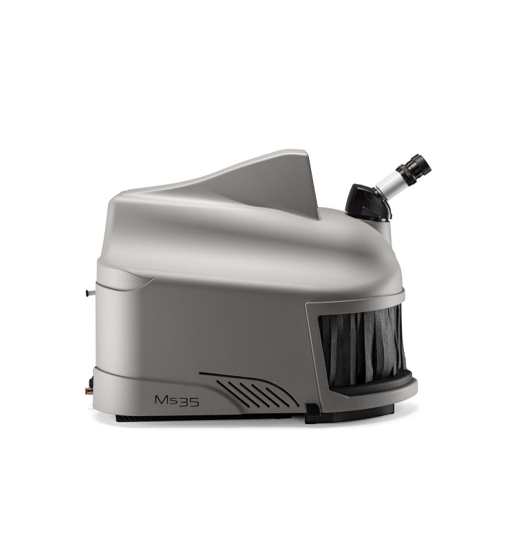 MS 35 - це надкомпактний апарат на базі класичної лазерної установки зварювання, ідеальне рішення для ювелірного виробництва, де потрібна точність та постійна якість при високій швидкості зварювання виробів із золота, платини, паладію, срібла (з дротом і без).