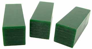 Набір воскових брусків призначений для виготовлення воскових моделей кілець, печаток, підвісок, ланок ланцюжків, пуссети і т.д. і випускається різних розмірів трьох ступенів твердості, які визначаються кольором. Зелений - найбільш популярний віск для різьблення. Це самий твердий віск, на ньому можлива прорезка найбільш тонких деталей і складних дизайнів. Найбільш важливою особливістю зеленого воску є простота його обробки напилками, надфілями і фрезами при високих оборотах (в тому числі і на токарних верстатах) без оплавлення матеріалу. Товщина виробів з воску може досягати 0,2 мм, при цьому восківка залишається міцною і не схильна до деформації. Ідеал для створення великих, складних моделей. Віск пом`якшується при температурі 116 & nbsp; ° С. Кількість брусків в наборі: 3 шт. Розміри: 30,2 х 30,2 х 95,3 мм. Вага: 227 г.