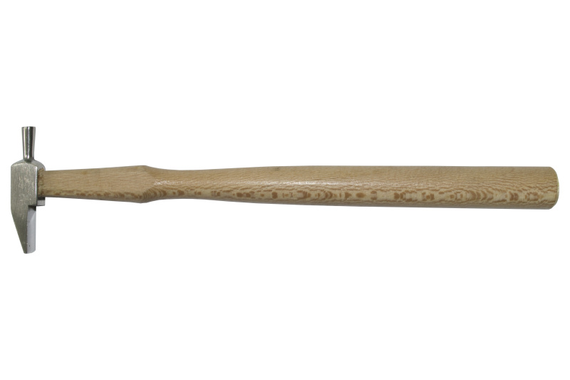 Сталевий ювелірний молоток з двома профілями на дерев`яній ручці призначений для розгладження, тиснення, окантовки і інших робіт. Бойок: 60х10 мм. Довжина ручки: 210 мм. Вага: 15 р