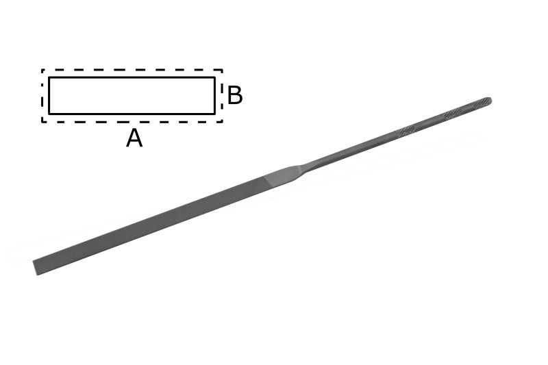 Надфиль зроблений з легованої сталі вищої якості. Насічка: №1. Загальна довжина: 200 мм. Робоча довжина: 100 мм. Розмір робочої частини: 6,5 х 1,3 мм.